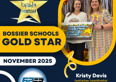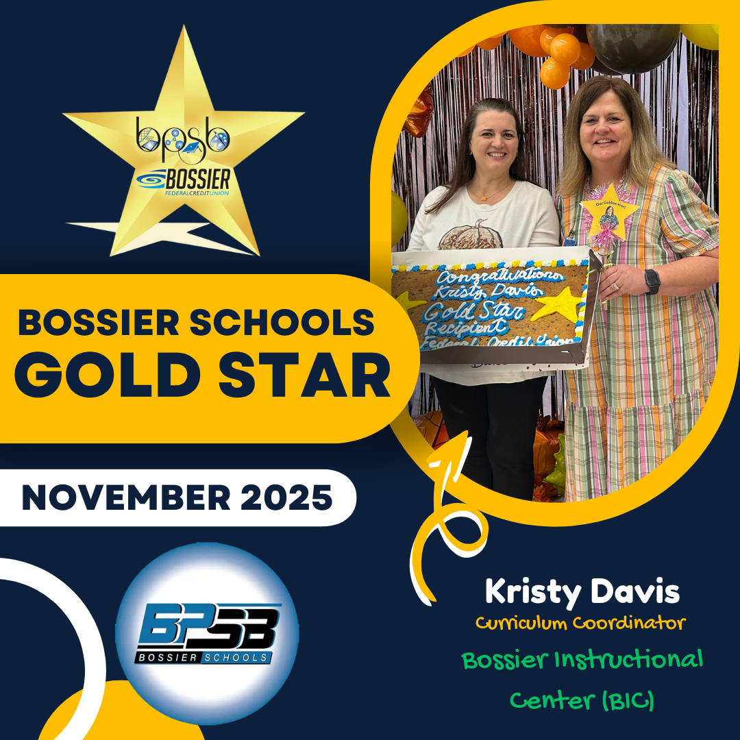 What a better way to start the Thanksgiving holiday than by surprising our November Gold Star! Kristy Davis is the Curriculum Coordinator at Bossier Instructional Center (BIC) and supports teachers all across the district.
