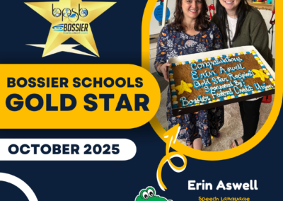 Congratulations to our October Bossier Schools Gold Star, Ms. Erin Aswell from Elm Grove Elementary School. Erin has been a tireless advocate for her students’ needs & worked so hard to bring the vision of an upgraded sensory lab to life. That vision became a reality with a grand opening on October 14 & we were fortunate enough to get a grand tour when we surprised her.